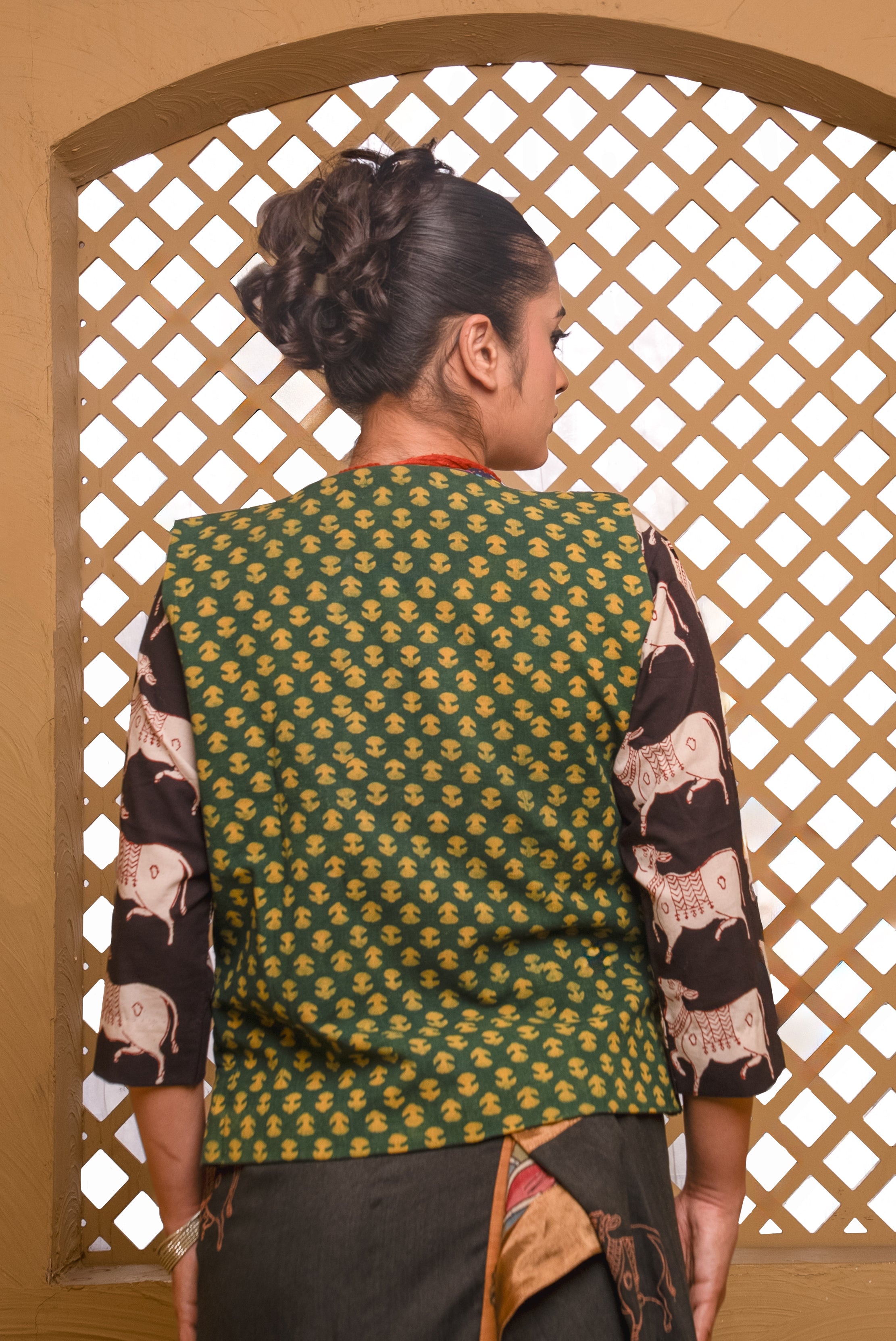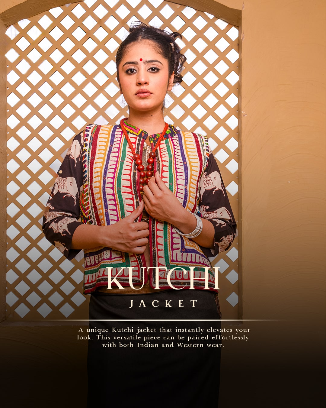 A one-of-a-kind Kutchi jacket that blends tradition with contemporary flair. Handcrafted with intricate detailing, this versatile piece adds instant character to any outfit—whether layered over a saree or styled with jeans. A statement of craft, culture, and effortless elegance.
